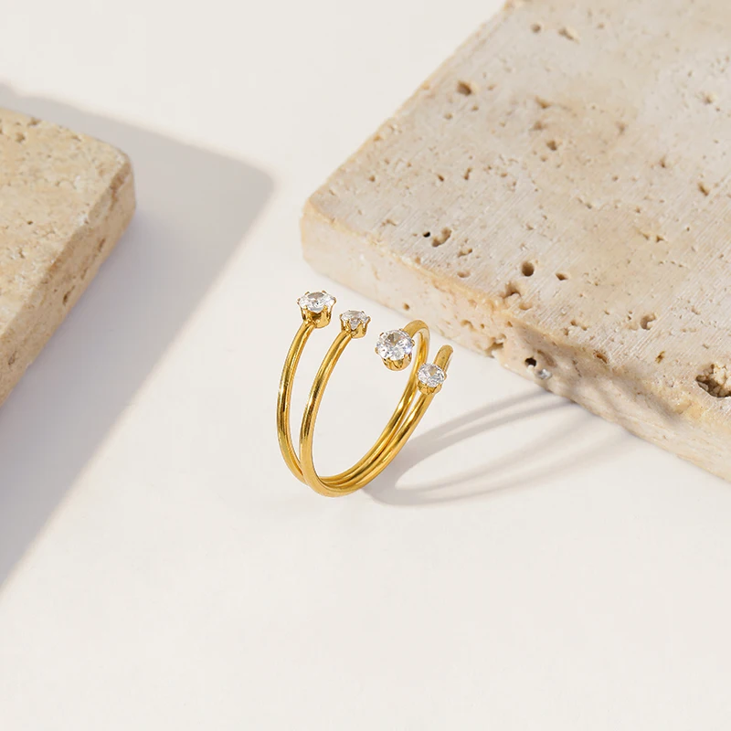 EILIECK 316L Stainless Steel Eye Zirconia Charms Ring for Women Fashion Statement Gold Color Waterproof Finger Jewelry Wedding